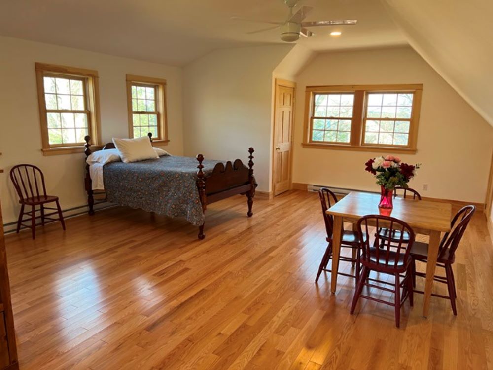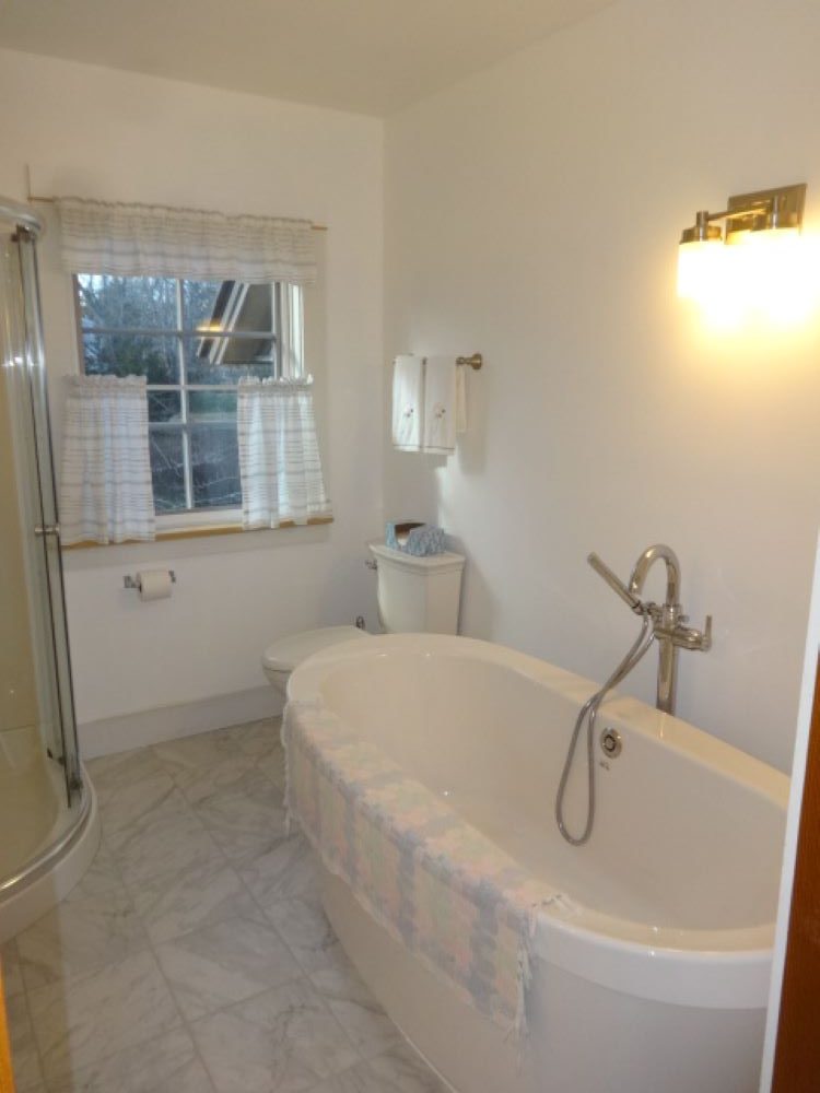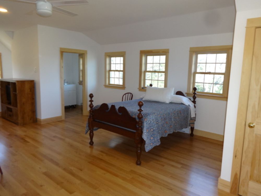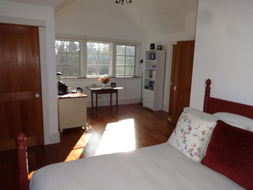 The second floor has a very spacious bedroom with study area, bathroom with soaking tub and three large walking-in closets/storage rooms, plus a little reading nook on the landing.