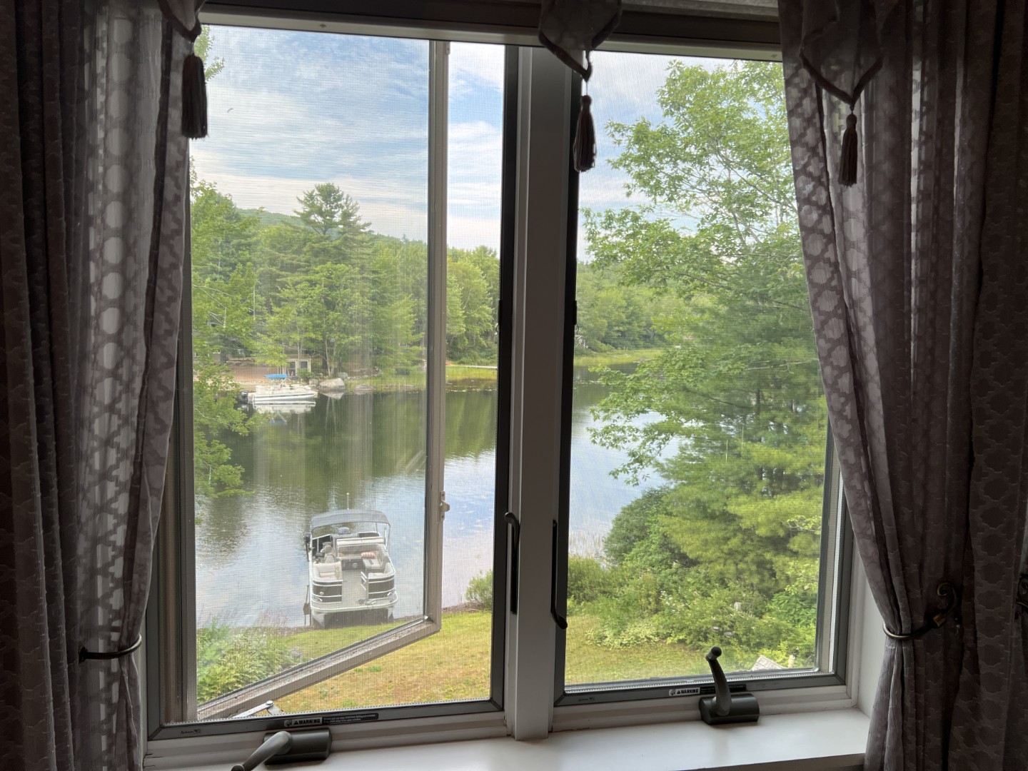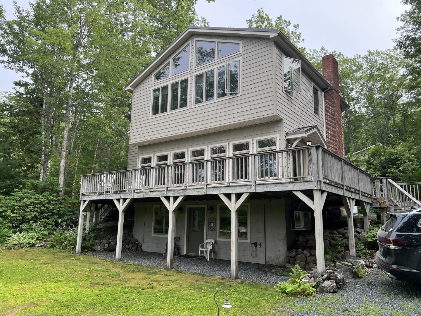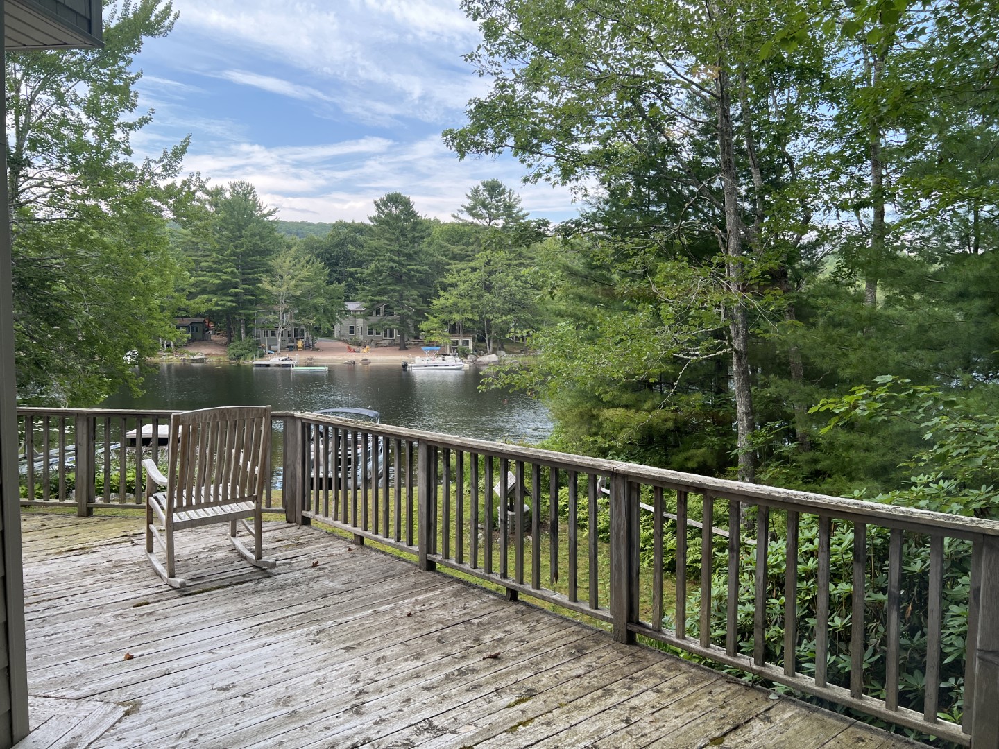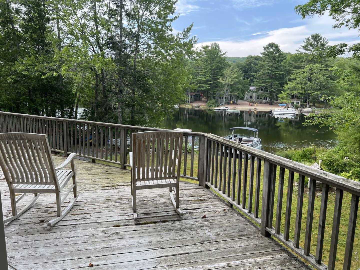 This year round home offers pond enjoyment through all the seasons. The nicely laid out kitchen has lots of storage with gas cook top and electric oven. There is plenty of dining room space for large gatherings or comfy chairs for watching pond activity. 9ft high ceilings add to the spacious feeling. The large living room has sliding glass doors to the deck and a propane stove for those cool mornings/evenings.
