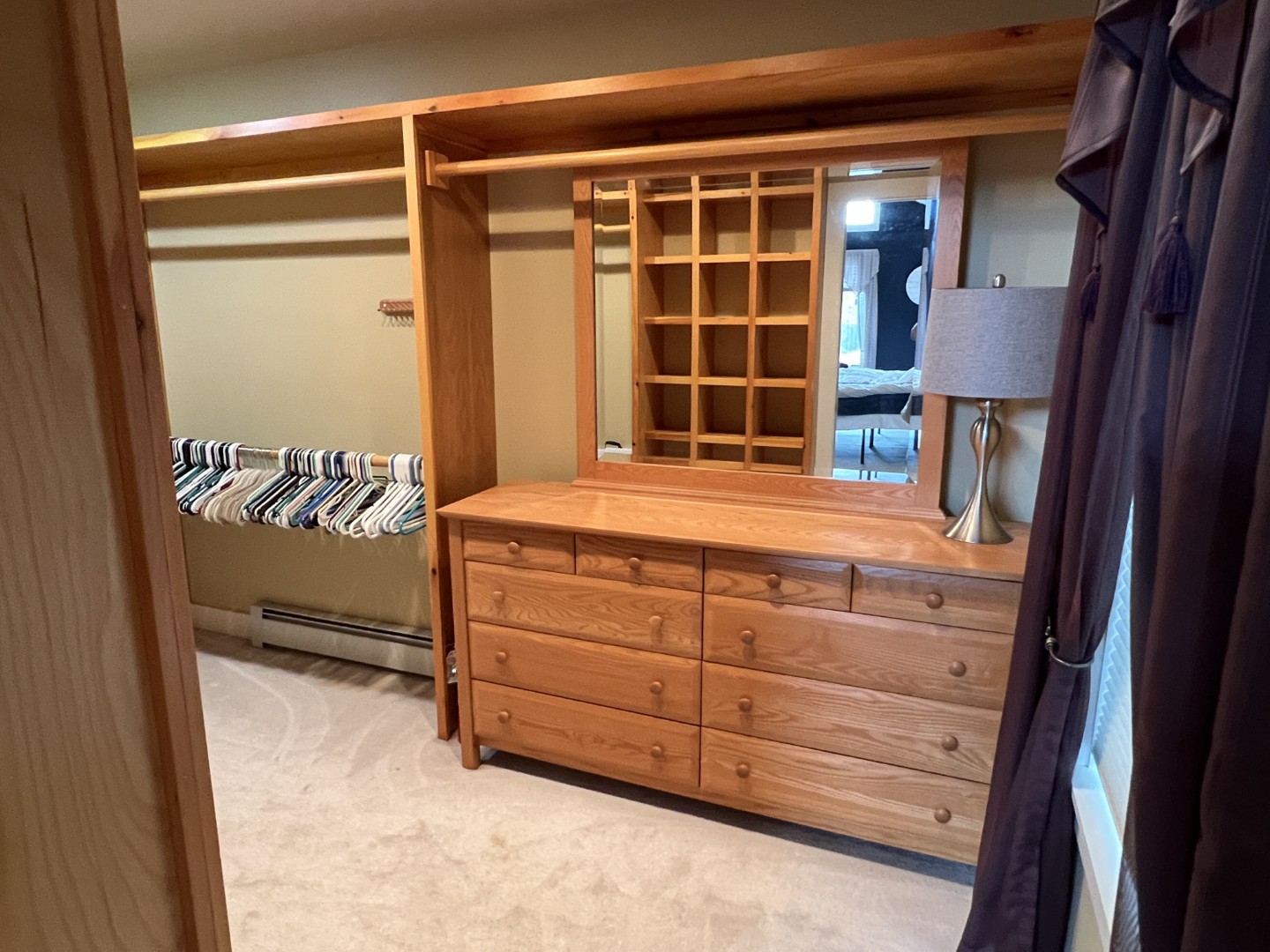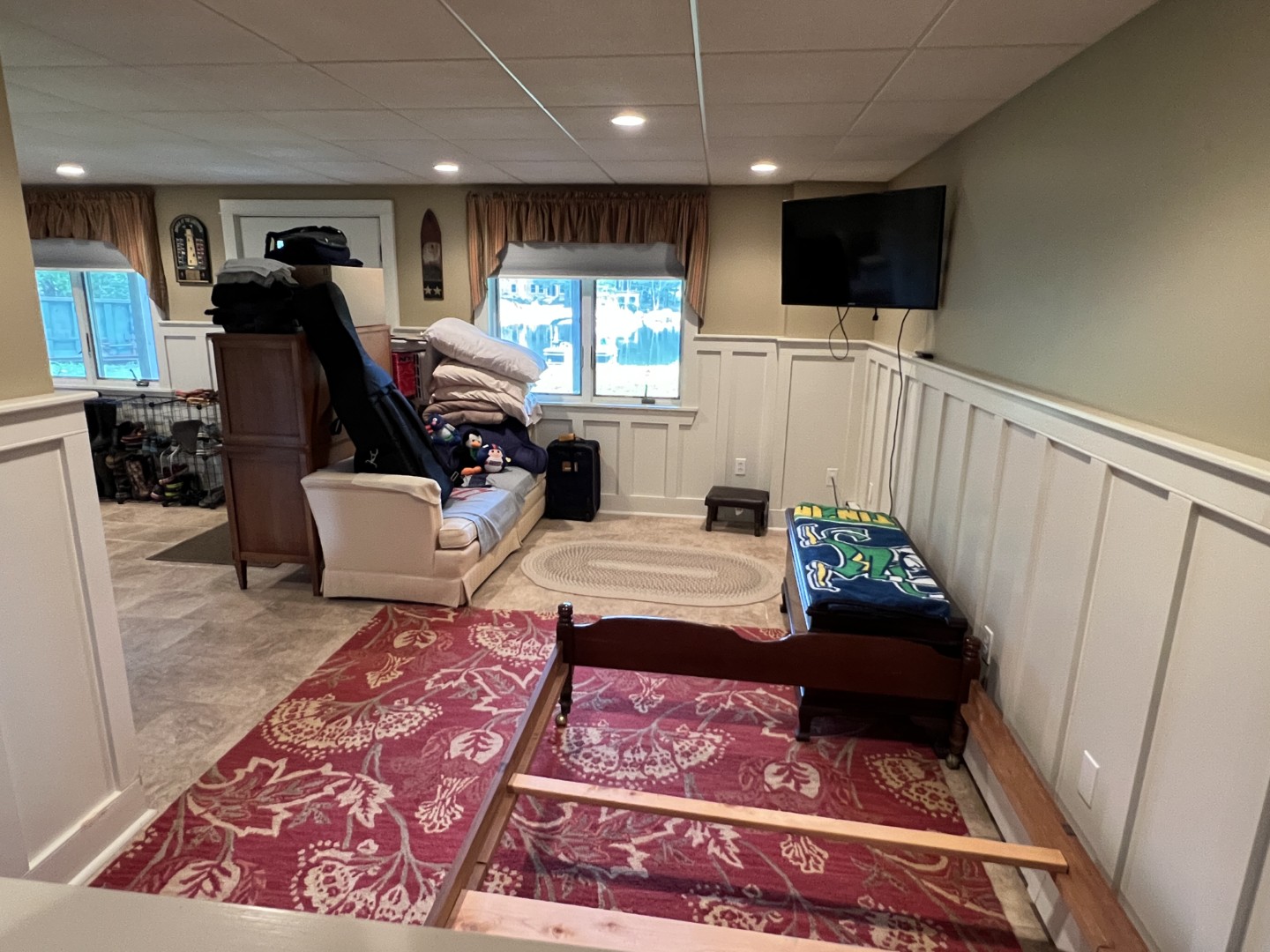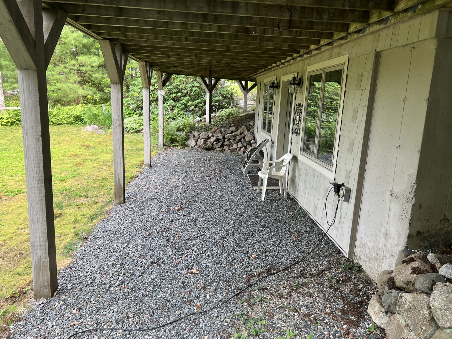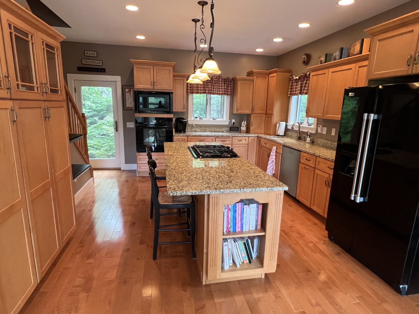 This year round home offers pond enjoyment through all the seasons. The nicely laid out kitchen has lots of storage with gas cook top and electric oven. There is plenty of dining room space for large gatherings or comfy chairs for watching pond activity. 9ft high ceilings add to the spacious feeling. The large living room has sliding glass doors to the deck and a propane stove for those cool mornings/evenings.