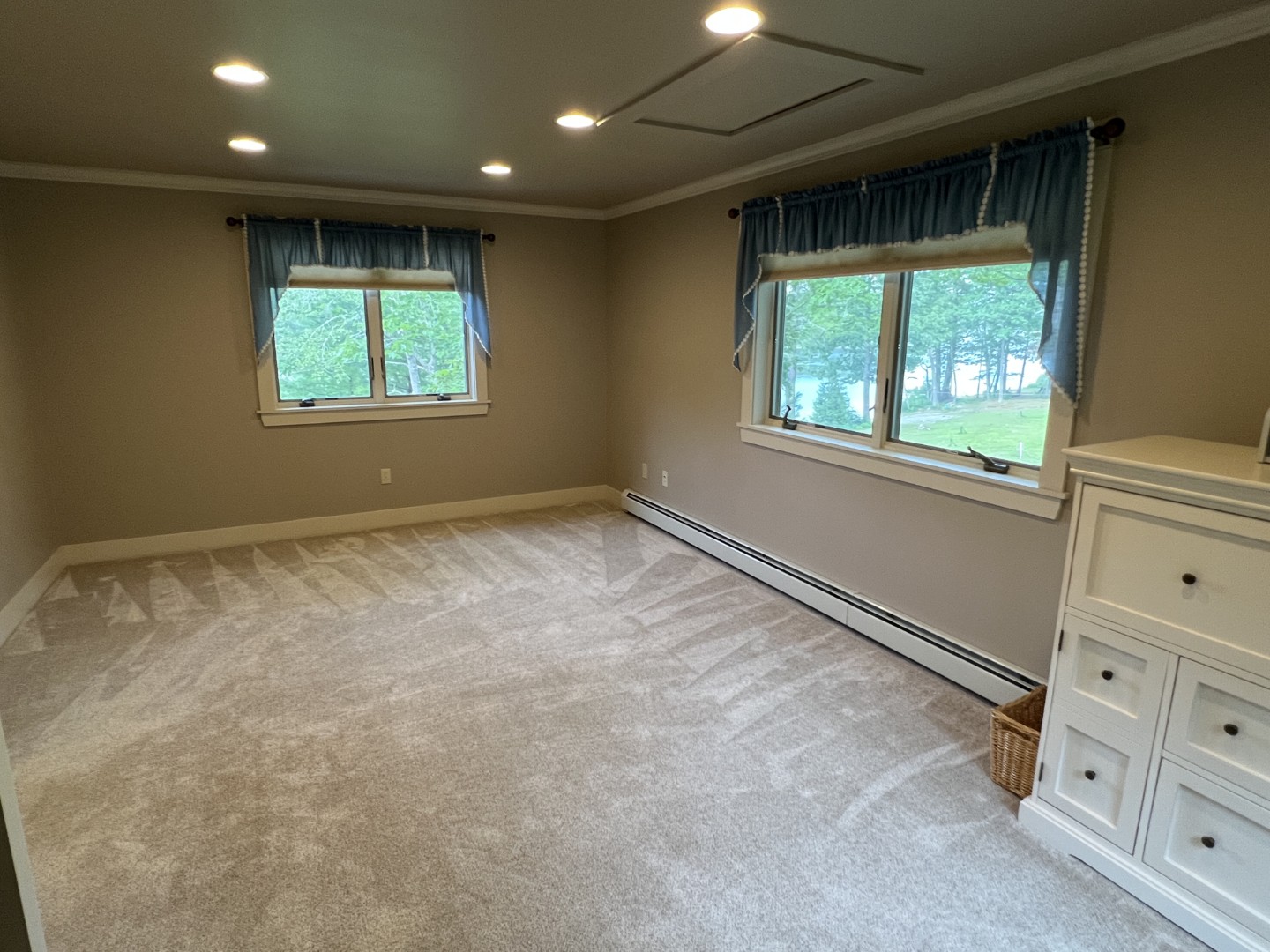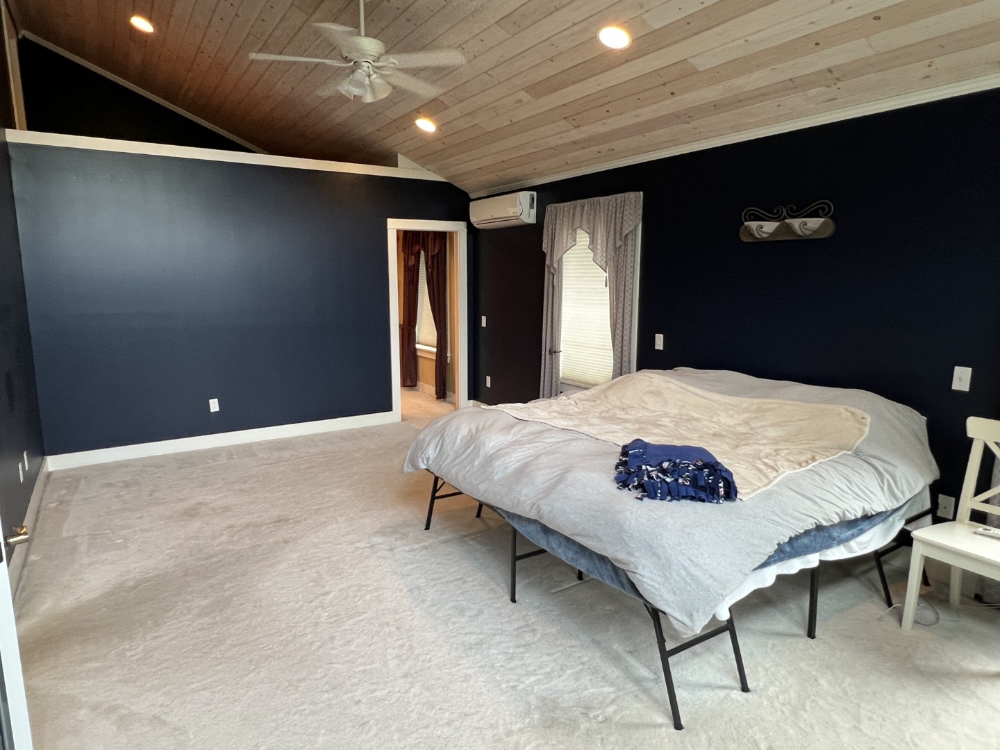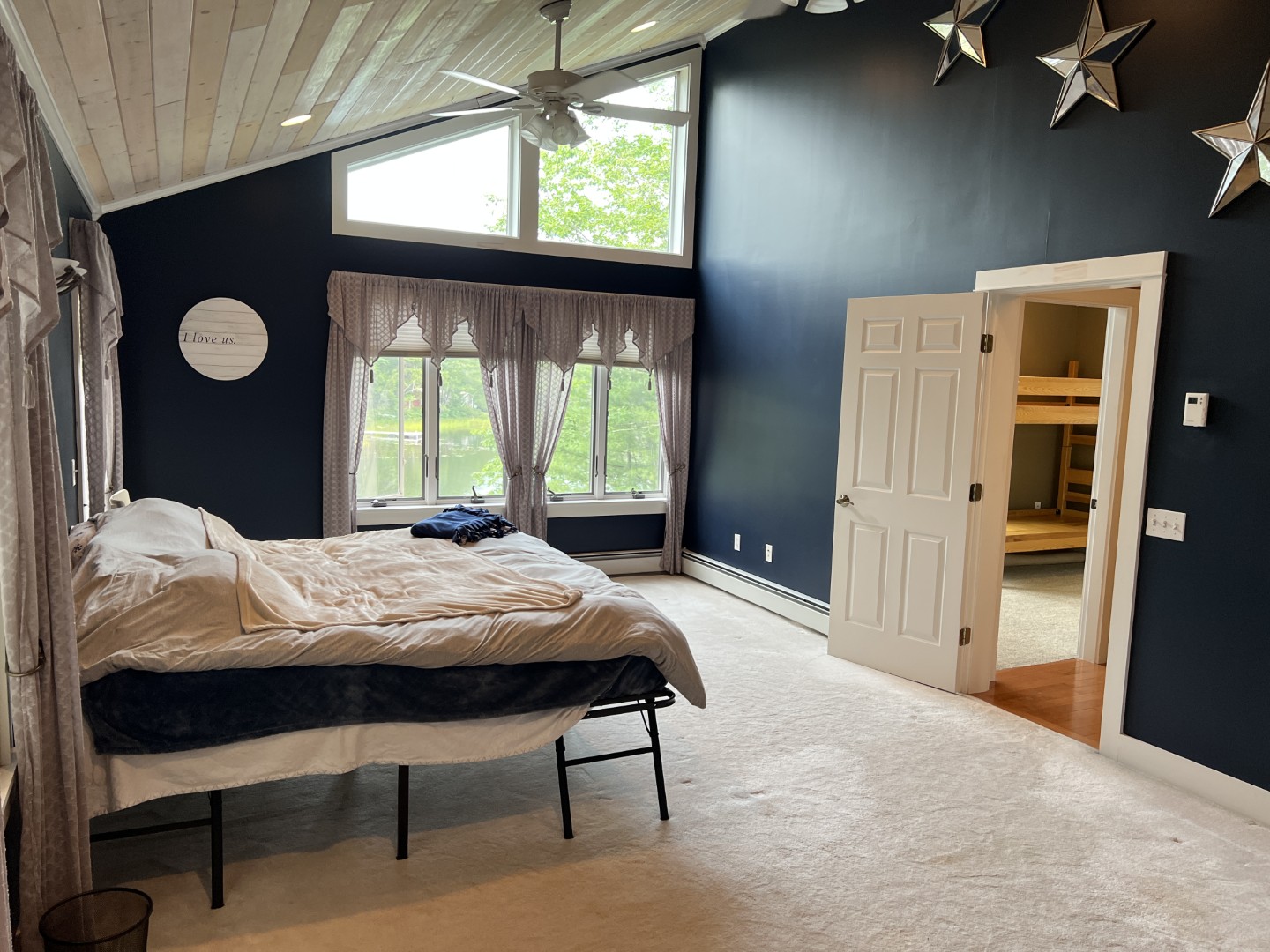 The second floor main bedroom is roomy, large windows and cathedral ceiling with a well planned walk-in closet. The second bedroom with large windows makes a perfect bunk room. The bathroom has both a large shower and soaking tub. There is a third bedroom with large windows accessed through the bathroom.