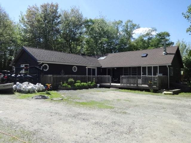 This year round home offers pond enjoyment through all the seasons. The nicely laid out kitchen has lots of storage with gas cook top and electric oven. There is plenty of dining room space for large gatherings or comfy chairs for watching pond activity. 9ft high ceilings add to the spacious feeling. The large living room has sliding glass doors to the deck and a propane stove for those cool mornings/evenings.